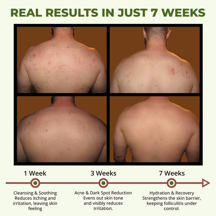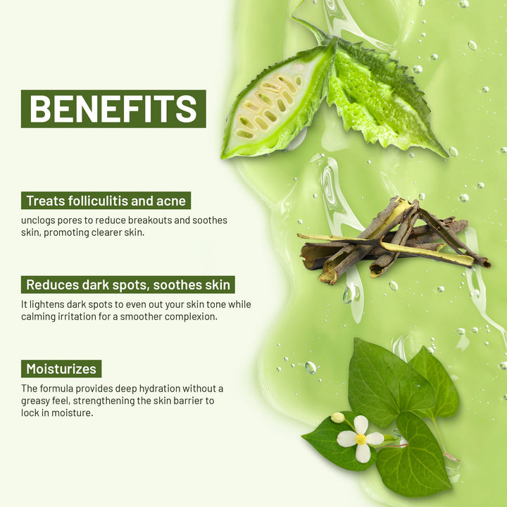 Folliculitis Shower Gel with Bitter Melon & Tea Tree Oil is a natural body wash designed to help with body acne and folliculitis, promoting smoother, healthier-looking skin. Formulated with bitter melon and tea tree oil for soothing benefits, it aids in reducing redness and irritation. Exfoliating ingredients like white willow bark and houttuynia cordata gently cleanse and purify. Suitable for sensitive skin, this shower gel leaves your skin feeling refreshed, clear, and radiant after each use