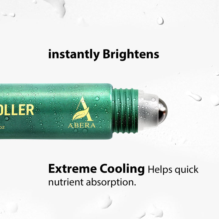 Cooling Serum for Puffy Eyes: Abera Eye Roller Serum provides refreshing relief from under-eye puffiness using mint essence and a smooth metal roller for easy daily use.